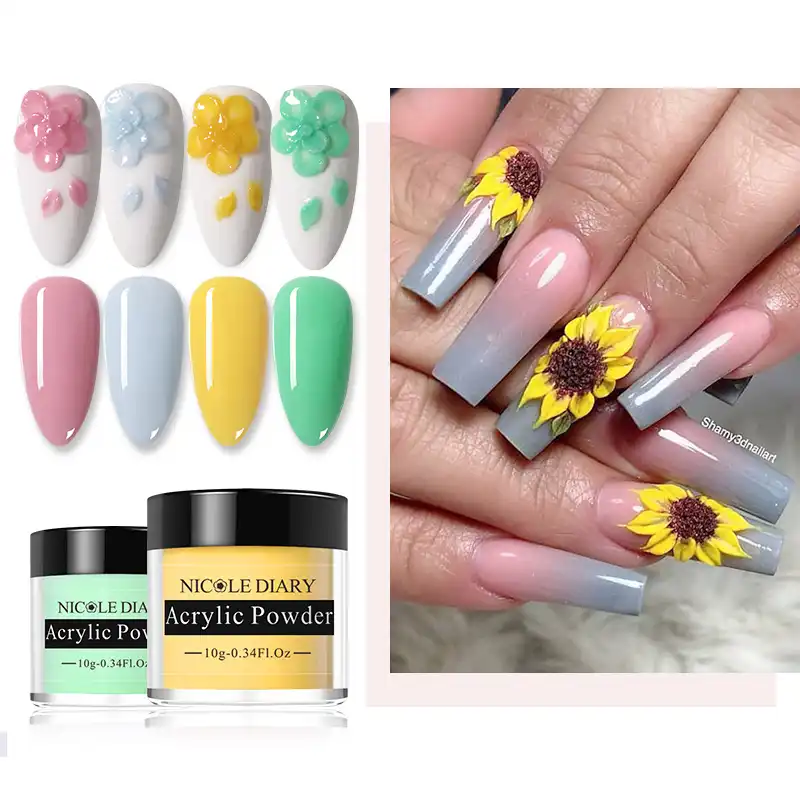 Nicole Diary 10g Clear Dip Powder Pink Yellow Acrylic Dip Powder Extension Carved Flower Powder Diy Nail Art Decoration Nail Glitter Aliexpress